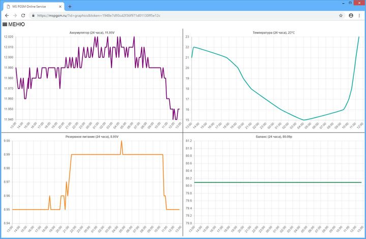 - Графики баланса, температуры, вольтажа системы за последние 24 часа